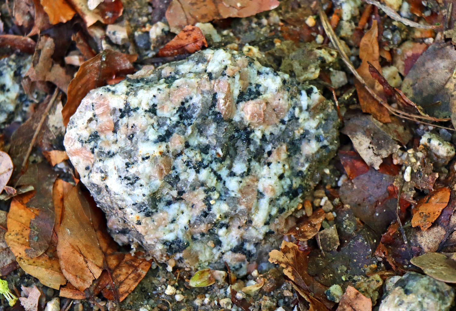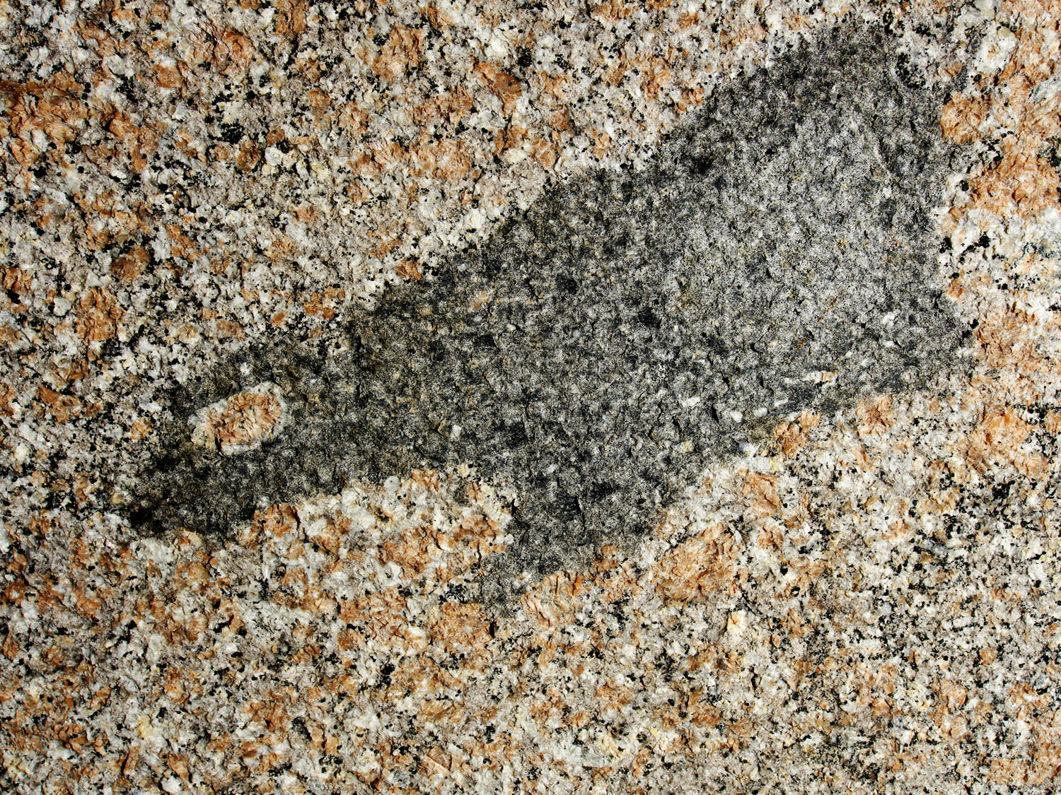 Xenolit v liberecké žule. Xenolit je kus cizí horniny, který se do žuly dostal v době, kdy byla ještě v plastickém stavu, foto: Ivan Rous