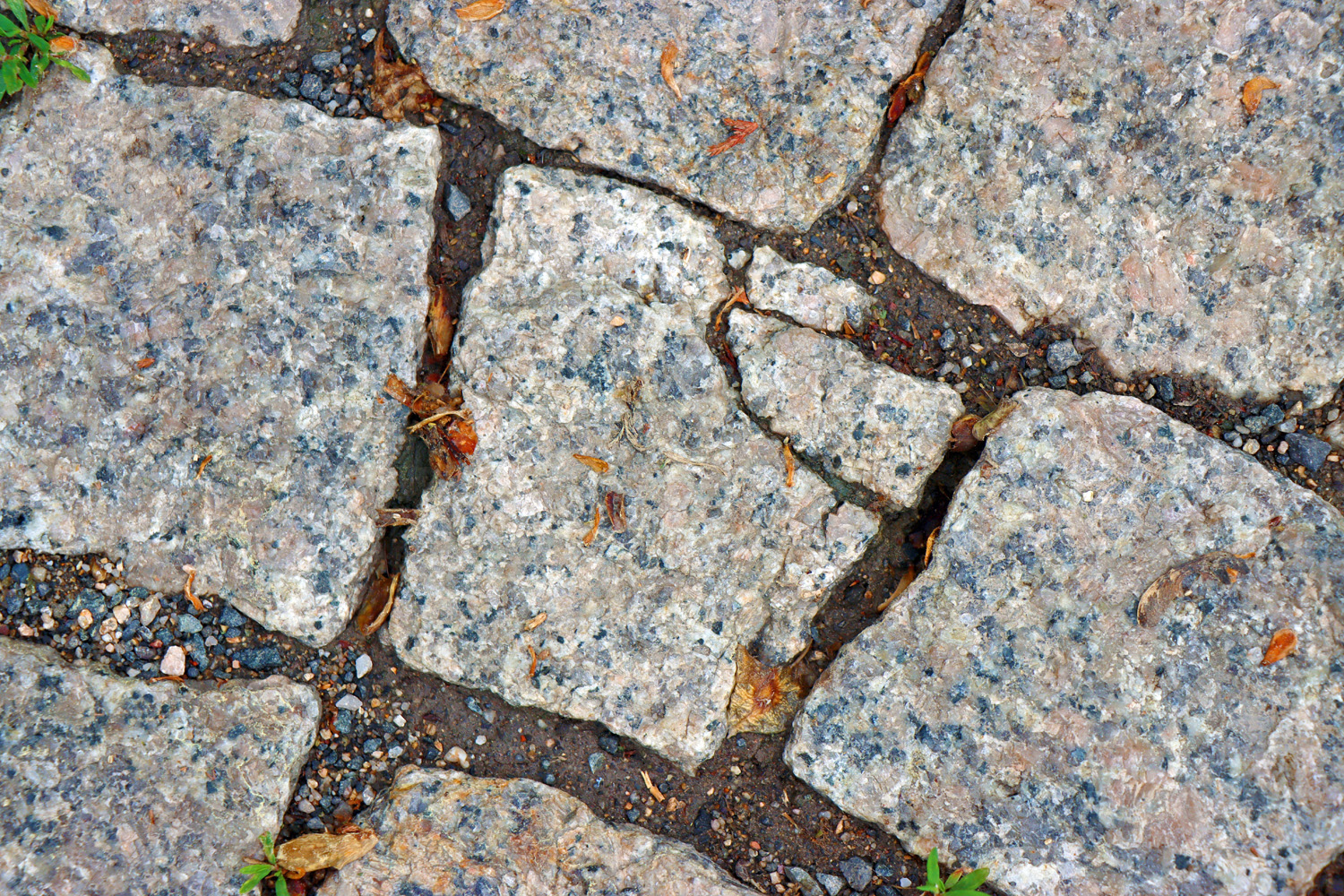 Žulová dlažba - kostka prasklá v důsledku vnitřního pnutí, foto: Emil Drápela